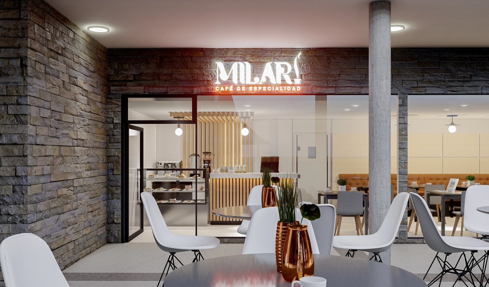 HABILITACIÓN COMERCIAL - CAFETERÍA MILARI - REMODELACION - RENDER - PROPUESTA - TEMUCO - CHILE